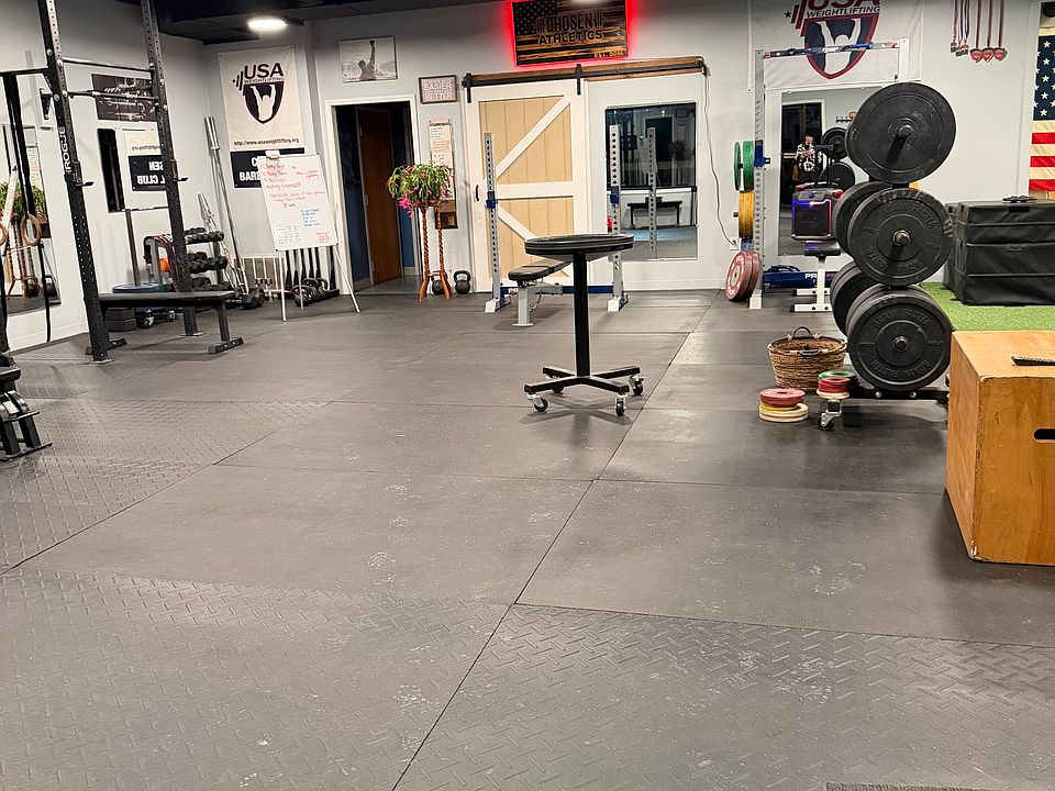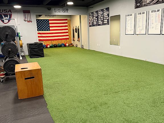 Turnkey Gym Setup Lease the space with all existing professional-grade equipment (racks, turf, weights, sleds, and more).