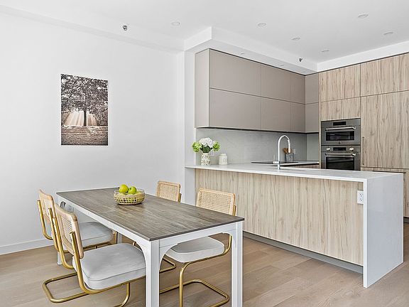 Space Like a House, All on One Floor. Spanning 1,542 square feet, this true three-bedroom, two-bath residence offers a level of space rarely found in New York City apartments. With every square foot thoughtfully designed on a single floor, this elevated residence offers the scale and livability of a house, without the stairs. Direct elevator access into your home, where the living and dining areas unfold as one continuous, light-filled expanse, an open canvas for how you want to live. With nearly 10-foot ceilings and 8-foot floor-to-ceiling windows, the space feels airy and uplifting. Whether it’s hosting a lively holiday meal, setting up a cozy movie night, or simply stretching out with a book in the sunlight, this expansive living space adapts with ease. The dining area comfortably seats 8–10, making it ideal for dinner parties and family gatherings. The residence is smartly laid out, featuring a separate bedroom wing that creates a clear distinction between entertaining and private spaces. The primary suite is tucked away for quiet and retreat, while the two secondary bedrooms, equally generous in size, are thoughtfully positioned within the same wing. Each room opens directly to the private balcony, inviting light, air, and moments of calm into everyday life. The Italian-crafted kitchen, designed by Studio 21, serves as the centerpiece of this 1,542-square-foot residence. Quartz countertops, custom cabinetry, and professional-grade Bertazzoni and Miele appliances elevate both form and function. Perfectly integrated into the open layout, the kitchen seamlessly connects to dining and living areas, underscoring the scale and flow of the home. The primary ensuite bathroom is designed as a sanctuary: a floating double vanity in natural oak with integrated sinks, a walk-in glass shower, matte ceramic cement tile floors, and a warm chevron wood accent wall that introduces a tactile, organic feel. The second bathroom is anything but secondary; a statement accent wall of 3D kaolin brush tiles adds sculptural depth, while a deep soaking tub invites restorative baths. A floating white oak vanity with integrated sink completes the space, blending elegance with everyday functionality. With separate temperature control for each room, abundant closet space, oversized windows throughout, and an in-unit washer/dryer hookup, every detail of the home is designed for both luxury and practicality. The elevator takes you directly to your private roof terrace, an extraordinary outdoor escape with sweeping skyline views. Designed for both quiet retreats and lively gatherings, your outdoor space invites everything from morning coffee rituals to sunset cocktails, offering the rarest luxury in city living: true open sky. You’re surrounded by local cafes, restaurants, and shops, with Park Slope’s Union Market and Fifth and Seventh Avenue amenities nearby. The R, F, and G trains put Manhattan within 30 minutes. The complete offering terms of the five units are in an offering plan available from the Sponsor, File N° CD240241.