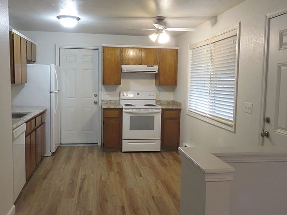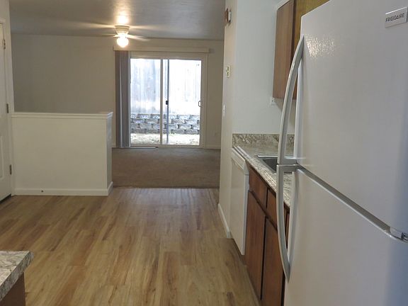 This is a one-level duplex located near shopping and a park. It has a large storage area. There's an enclosed private patio off the living area. Laundry hookup available inside the unit. The kitchen appliances are a stove, a refrigerator, and a dishwasher. This unit is available now.