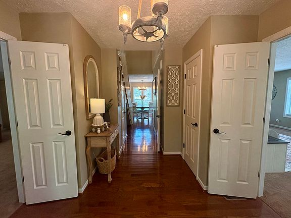 Welcome to this charming hilltop home in Saluda! Situated on nearly an acre, this property features a large garage, roundabout driveway, and a welcoming covered front porch. Inside, the foyer opens to dual living rooms on either side, leading down the hall to a convenient half bath and an open kitchen and dining area. The dining space boasts a bright bay window, while the kitchen includes an eat-in bar for casual meals.