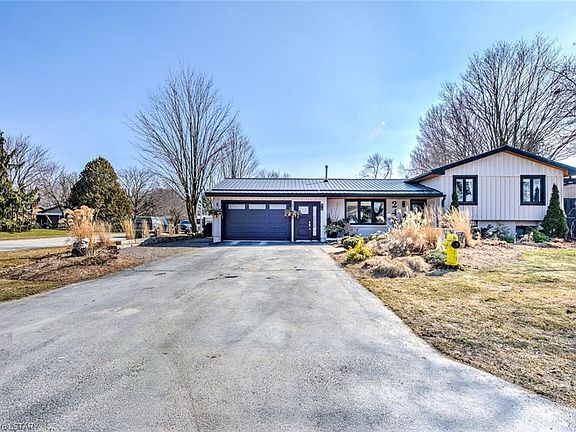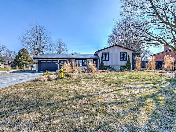 Stunning Renovated family home on a large corner lot. Features 30 x 20 Heated Shop with garage door and man door access. recently added 1.5 car garage 20 x 25 with flow through door to the Shop in the back rare feature. inside find a large open concept main floor kitchen and eating area, Great room over looking the back yard with vaulted ceilings with french door to the back yard. Beautifully renovated exterior with new windows, new sofit and Fatia with inlay cedar and Newer metal roof system. large shed with kids playhouse above, inside 3 gas fireplaces, 3 bedrooms, hardwood in the kitchen and eating area and good sized bedrooms. This is a must see in Thamesford just a short drive to London.
