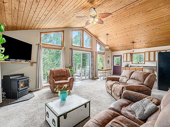 Looking for a home out of the city? A second mountain home? How about a long term/short term rental property? Here is a great, adorable property located less than an hour from Denver. Drive up to Bailey and check out this adorable updated two-bedroom home with a remodeled bathroom and open floor plan. Walk into wood plank vaulted ceilings in the kitchen and family room with large windows filling it with natural light. Recently updated high impact items include: roof was replaced in 2014, new bathroom in 2020 with a large soaking tub, new carpet in 2018, and new flooring in the kitchen and laundry area, new heater in 2018! Dishwasher, gas burning oven/ stove, and microwave are all less than two years old. The wood plank ceiling in the front and the vaulted ceiling in the primary bedroom add to the beauty of this home. Don’t miss the huge walk-in closet in the primary bedroom. This lot is level with ponderosa pines, an aspen grove, and is breathtakingly beautiful in the fall. There is a 20x10 shed for extra storage and lots of level space to park your vehicles.