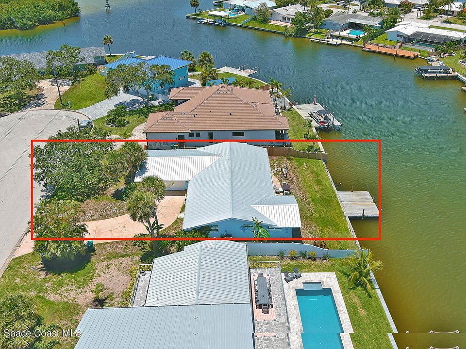 Canalfront Home in the Heart of Cocoa Beach! Just a short walk to Lori Wilson Park and the Atlantic Ocean! Only 2 houses away from the scenic Thousand Islands. This spacious 4-bedroom, 3-bathroom home offers 2,000 sq ft of living space and is perfect for multi-generational living with 2 private suites. Sitting on one of the widest canals in Cocoa Beach, the property boasts 80 feet of water frontage with stunning views. Extensively renovated in 2017: new spacious kitchen with quartz countertops and huge island/ breakfast bar, new walls and ceilings, fully repiped plumbing (copper replaced with PVC), all new electrical wiring and upgraded panel, new A/C unit and ductwork, and $7k central water softener system. Other Recent major upgrades include: new metal roof & gutters (2020), new water heater (2024), & new A/C outside unit fan (2025). NO HOA! Plenty of room to add a Pool. Enjoy the waterfront lifestyle while being part of a friendly small-town coastal community!