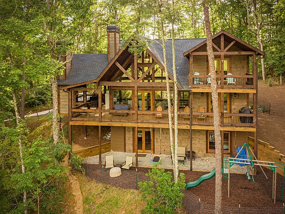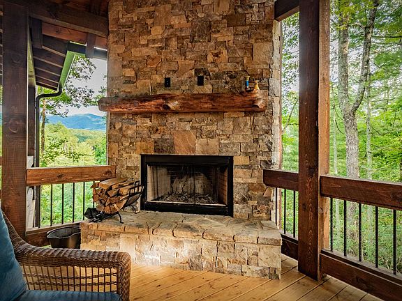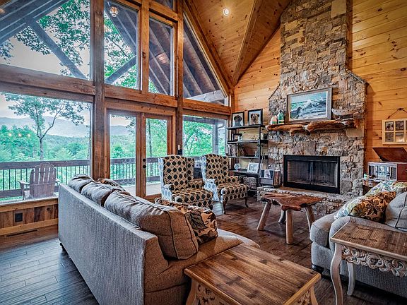 WOW factor. Stunning less than 2 year old 4/3.5 with bonus huge loft and terrace level game room with wrap around decks, deeded river access with community pavilion, outdoor fireplace, take your breath view, all paved access including concrete driveway, detached storage building, rustic finishes including live edge, granite counter tops, and stacked stone fireplace. Did I mention there is a winery across the rd?? Schedule your showing today