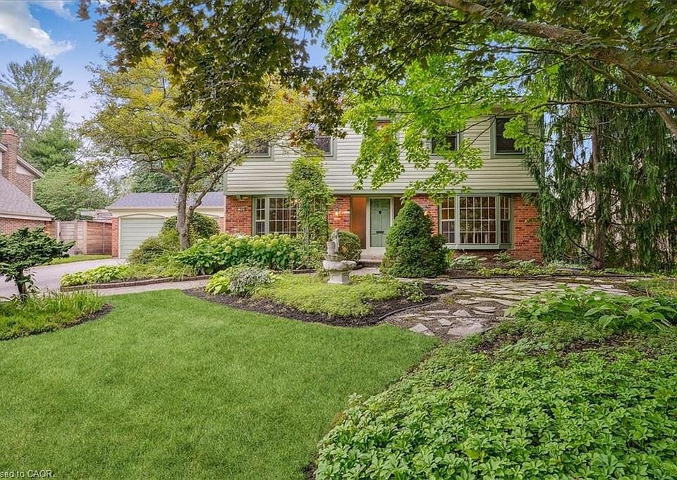 Situated in prestigious SE Oakville on a picturesque tree-lined street, this classic McClintock home offers oversized principal rooms and warmth throughout. Set back among mature trees and quaint pastoral gardens, the 75.11 x 116.89ft property offers privacy and tranquility with a terraced backyard. Features of the home include the front living room and separate dining room each with their own bay window with front garden views; a traditional eat-in kitchen with updated appliances and a built-in wall oven, plus a sliding door walkout to the back porch and backyard; a main-floor family room with a wood-burning fireplace and sliding door to the patio and stairs to the terrace. The second level offers four spacious bedrooms, main 4-pc bathroom, and primary bedroom with a 4-pc ensuite. The basement features a recreation room, bedroom/office, laundry room, and a storage room/workshop. Enjoy the home as-is or personalize it to suit your style. The two-car garage is attached by a bridge over the breezeway to the backyard. 8 parking spots on the extra-long driveway. Located in the top-rated public school district - Oakville Trafalgar High School, Maple Grove Public School, and E.J. James Elementary School (French Immersion). This is a rare opportunity to own a beautiful home and property in one of Oakville's most sought-after neighbourhoods.