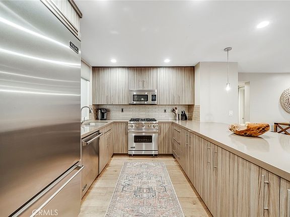 An ideal vacation home, 1031 exchange property, or full-time residence tucked away in the coveted heart of Laguna Village, this beautifully upgraded 1,500-square-foot condo effortlessly combines comfort, style, and sophistication. With 3 spacious bedrooms and 2 luxurious bathrooms, the home features a soft contemporary design that offers a refined living experience. The chef-inspired kitchen, outfitted with Viking Professional brushed stainless steel appliances, sleek quartz countertops, and a timeless subway tile backsplash, effortlessly flows into the expansive great room, perfect for both relaxed lounging and casual dining. Wide-plank wood flooring spans the entire single-level unit, bringing warmth and continuity throughout, while custom tile accents enhance both bathrooms. The primary bathroom offers a serene retreat, featuring a full-sized walk-in shower with stunning limestone wall tiles, premium Hansgrohe hardware, a rain shower, and dual sinks for added luxury. This exceptional end-unit condo provides ultimate privacy and effortless living, complete with a generous outdoor patio space off the living area that enhances the indoor-outdoor lifestyle, convenient indoor laundry, and 2 dedicated parking spaces. For those seeking a pristine Laguna Beach location just moments from the ocean, this property offers more than just a home—it’s an invitation to fully embrace the Laguna Beach lifestyle. A must-see for the discerning buyer!