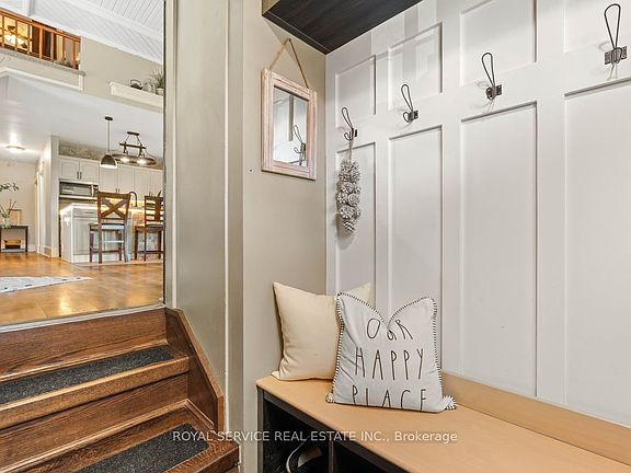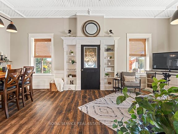 Historic Schoolhouse Turned Dream Home! Built in 1904, Harold School S.S. No. 14 has been beautifully transformed into a truly unique residence. From the original school bell still resting in the belfry to the character-filled hardwood floors, history is alive here - yet perfectly balanced with thoughtful modern updates. A recently built gorgeous covered front porch enhances the exterior and offers the ideal spot for morning coffee or evening drinks in a peaceful country setting where you can often watch the neighbours pass by in their horse-drawn buggies. Step inside to soaring 11' ceilings and oversized windows that flood the open living and dining areas with natural light. The updated kitchen boasts a massive quartz island designed for entertaining, leading seamlessly to a large bright pantry with a walkout to a 12' x 12' deck. The main floor also features a 4-piece bath with soaker tub, two spacious bedrooms, and convenient laundry. Upstairs, in the loft, a private suite awaits with skylights, stunning inlay hardwood floors, a 2-piece ensuite, and walk-in closet. The lower level expands your living space with a freshly painted rec room, office, and plenty of storage. Outside, a 24' x 30' insulated garage (built in 2020) with hydro, 10' ceilings, woodstove, and lean-to delivers incredible versatility for hobbies, storage, or workshop use. With modern upgrades, efficient utilities, and high-speed internet, this rare offering blends historic charm with everyday comfort in a welcoming country setting.