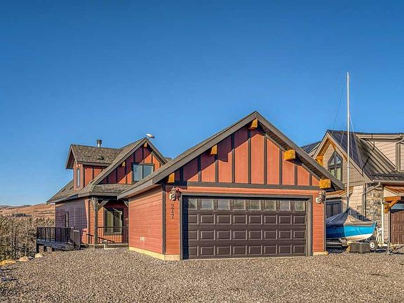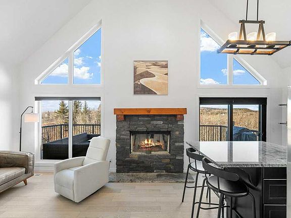 Open-concept living spaceSoaring windowsUnobstructed west-facing mountain viewsCentral wood-burning stone fireplaceFreshly landscaped propertyCrushed stone drivewayDouble detached garage
