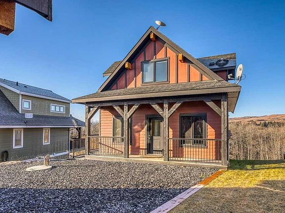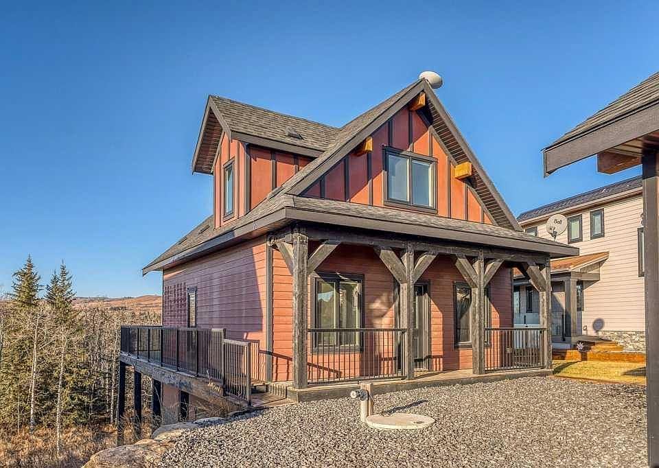 Perched in one of the most coveted locations within the community, this beautifully updated one-and-a-half story home captures the very best of lake living. Step inside through the convenient entryway to discover an open-concept living space where soaring windows frame unobstructed west-facing mountain views that will take your breath away morning and night. Fresh paint and new flooring throughout create a move-in-ready canvas, while the central wood-burning stone fireplace anchors the main living area with warmth and character.The main level thoughtfully offers two bedrooms alongside a full bathroom, ideal for family or guests. Ascend to the lofted primary suite—a private retreat with its own ensuite bathroom. Natural light pours through every corner of this home, making even the grey days feel bright.The developed basement extends your living space with a cozy family room or ideal space for a fourth bedroom, giving you flexibility as your needs evolve. With over 1500 square feet of living space the possibilities are endless. Outside, the expansive wraparound deck overlooks the ravine with nothing but nature and mountains beyond—no neighbours to interrupt your view. Located on one of the larger lots in Phase 1 at 5,401 square feet, the freshly landscaped property includes a crushed stone driveway leading to a double detached garage with the potential for an additional guest suite.Living here means more than just a beautiful home. A quick stroll brings you to the exclusive clubhouse where resort-style amenities await: boat launch, indoor pool, outdoor hot tub, tennis courts, gym, commercial kitchen, BBQs, and a wood-fired pizza oven on the huge sun soaked patio. Ideally situated within 30 minutes of both Calgary and the Rockies and only 15 minutes to Cochrane, Cottageclub delivers the best of both worlds—urban convenience meets mountain adventure at your doorstep. Enjoy this year-round recreational paradise with every amenity and service you could possibly want just a short drive away.