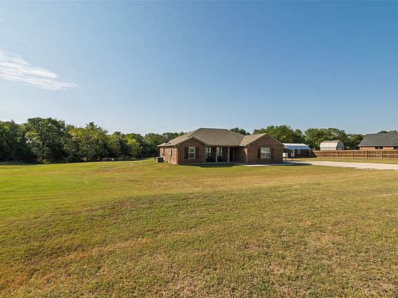Beautiful 4 bedroom 3 bath custom home nestled on 2 acres in Callisburg ISD. Spacious open concept floor plan with plenty of room for the entire family. Bedroom #2 has its very own ensuite bath, making it a second primary bedroom offering added privacy from the rest of the home. Granite countertops in the kitchen with ample cabinet space as well as granite countertops in all 3 bathrooms. Laminate and tile flooring throughout the entire home. Dining room has a dedicated coffee bar area that leads out to the covered back patio so you can sip on some hot coffee while taking in the serene country views all around you. Large covered back patio is perfect for entertaining and cooking out and also comes equipped with a fire pit area ready for you to enjoy. Spray foam insulation encapsulates the exterior and attic areas of the home which helps keep this home super efficient in both the hot and cold months. Located outside of the city limits, this is country living at a great price. Come and see it for yourself and contact your favorite Realtor today.