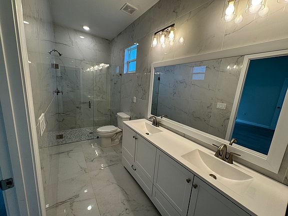 Marble islandEn-suite bathroomHigh ceilingsOpen floor planMarble designer herringbone backsplashLight vibeOversized master closet