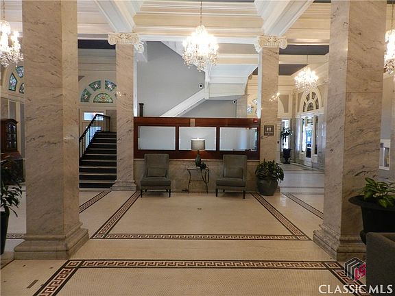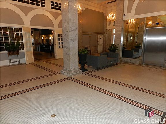 Must see unit in one of the premiere locations in the building. 2 BR 2 BA Corner Unit on the 5th floor in the Historic Georgian overlooking all of Downtown Athens & UGA! Built in 1908, the Georgian Hotel was designed by Anthony Ten Eyck, the same individual who designed the courthouse next door. The Georgian was renovated in 1985 to become luxury downtown apartments & in 2007 converted to condos. One of the finest hotels in its day, even the author Margaret Mitchell stayed here. The Unit includes an open floor plan living dining, kitchen with all Stainless Steel appliances and granite counter tops, hardwood floors throughout the main living area kitchen and hall, carpet in the 2 large bedrooms, & tile in both bathrooms. This gorgeous unit has 9 ft. ceilings with elaborate crown molding & over-sized windows. One parking spot behind the building for Unit 506 with gate access clicker (restricted access) & another parking spot next door at the courthouse. Great Location! The Georgian is two blocks from the University of Georgia's North Campus. Also, the downtown location is steps away from fine dining, shopping, Sanford Stadium for football, the Classic Center & the famous 40 Watt & Georgia Theater among other bars/lounges for the legendary music scene in the Classic City ! The Georgian is a unique 34 residential unit property beautifully accented with stained glass windows, columns & walls made of marble & tile floors. The main floor includes a beautiful lobby, restaurant/lounge called South Kitchen. Amenities include a Clubroom which can be reserved by owners, reserved parking & locked access for lobby and elevator for owners. The Georgian is a great investment & a great part of downtown Athens' history. Whether you are looking to live downtown, your child is a UGA student, or you want a weekend crash pad to visit Athens for football games you have found the most exclusive place in downtown Athens with a very rich history! Please see the many photos of The Georgian, Unit 506, views of downtown Athens, The Clubroom, restaurants & downtown life! Unit has it's own locked storage cage in the basement. There is a current lease which expires 7/31/23 with rent of $2,200 which new owner will assume. Owner occupancy will be 8/1/23 just in time for Georgia Football and a possible three-peat of the National back to back Champion Dawgs!
