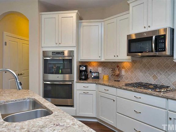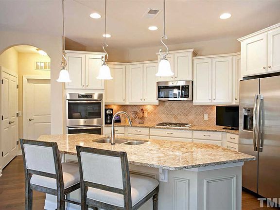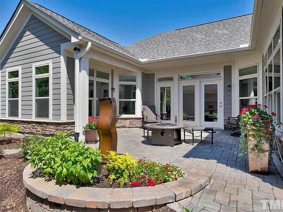 STUNNING, beautifully upgraded ranch style home w/ second level guest suite. Natural light fills the main living space w/ beautiful views of private courtyard and wooded lot. High-end kitchen details - premium cabinets, appliances, quartz, custom pantry + cab organizers. Gorgeous her/his walk-in closets, 5" plank floors, custom lighting, trey ceilings, plantation shutters, stone exterior, oversized garage. Maintenance free 55+ community w/ pool, clubhouse, near newest shopping, restaurants, greenways!