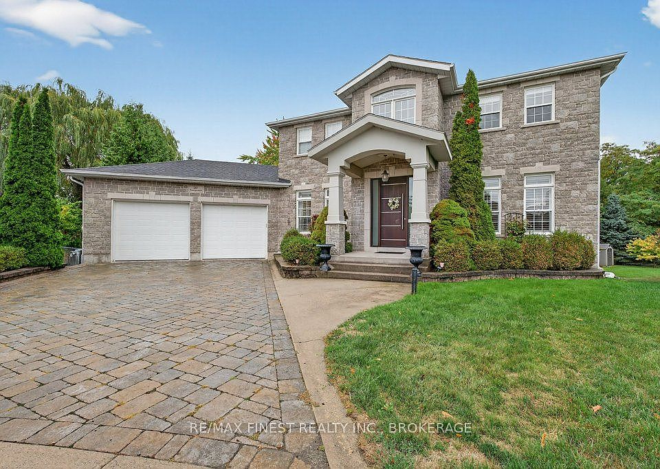 Welcome to this exceptional executive residence located on one of the most coveted streets in Kingston's east end. Designed with elegance and functionality in mind, this spacious 4-bedroom, 3.5-bath home offers over 3,000 sq. ft. of refined living space with soaring ceilings, a stunning skylight, and an airy open-concept layout. The gourmet kitchen features granite countertops, abundant cabinetry, and flows seamlessly into the main living areas--perfect for entertaining. Enjoy the rich beauty of Brazilian hardwood flooring, two cozy gas fireplaces, and built-in speakers inside and out. The fully finished lower level includes a kitchenette, newer flooring, heated bathroom floors, and a walkout ideal for guests or extended family. The luxurious primary suite boasts a spa-inspired ensuite with in-floor heating. Additional highlights include a main-floor mudroom with exceptional storage, 9-ft garage doors, and numerous recent upgrades: new roof (2018), front door (2020), furnace and AC (2022), rental hot water tank (2022), and extended patio (2023). Outdoors, you'll find low-maintenance composite decking, interlocking driveway and patio, and a relaxing hot tub perfect for year-round enjoyment. This meticulously maintained home blends timeless quality with modern convenience --truly a rare find in an outstanding neighbourhood.