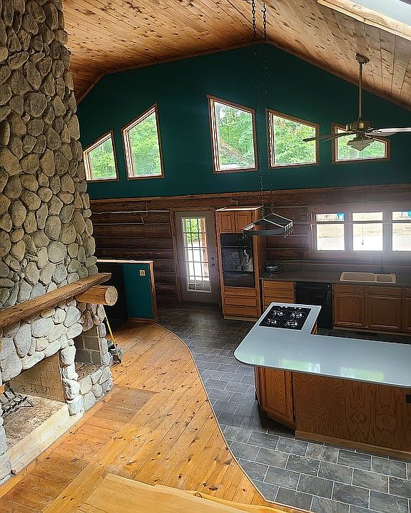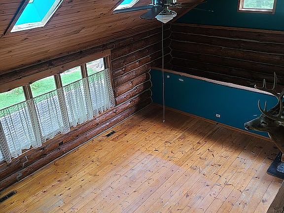 Log home in the woods. Approximately 6 acres. 100% timber. 4 bedrooms, 2 1/2 baths. Full, unfinished basement. Poured concrete foundation with 10 inch thick walls. Cathedral ceilings. 2400 sq ft with a 600 sq ft loft. Several skylights. Doubled sided fireplace. Woodburning stove. Newer shingle roof. 2 car plus garage. 33ft by 40 ft three sided shed. Limited neighbors. Secluded. Call 815-343-8239 for more details or email emsue1985@yahoo.com.
