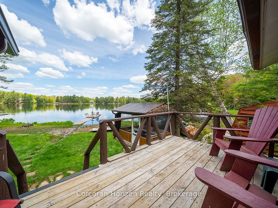 This charming 4-bedroom, 4-season cottage offers the perfect balance of vintage character and modern convenience. Set on 110 feet of northern exposure shoreline, it delivers stunning views and peaceful sunsets, along with both shallow beach access and deep water off the dock for diving, fishing and boating. Inside, the living room's woodstove creates a warm gathering spot, complemented by electric baseboard heating and waterlines with heat trace making year-round use an option. The cottage is powered by an updated 100-Amp electrical service breaker panel. Step outside to find ample decking for entertaining, a screened 10x10 gazebo with power right off the beach, and a 20x10 workshop (60 amp service) for storage and/or hobbies. The 50-foot floating dock is already set up with two benches and a table ready to keep the good times rolling lakeside. The water pump was updated in spring 2025. Both downtown Huntsville and Bracebridge are only ~15 minutes away. Whether you're looking for a family getaway or a potential short-term rental, this Mainhood Lake property offers quiet, comfort, and a great opportunity to enjoy lakeside living.