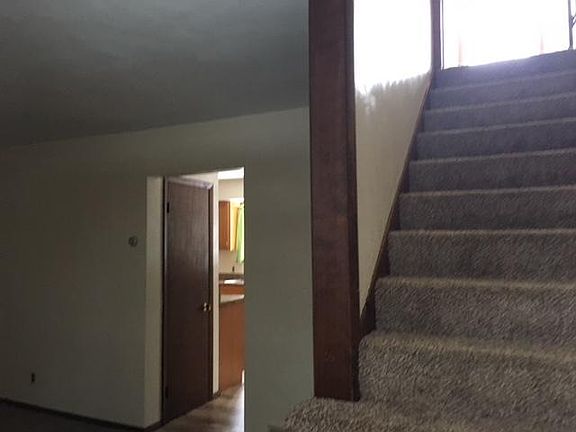 1 bedroom apartment. Kitchen, laundry room, bathroom and living room on 1st floor. Upstairs has large bedroom. Patio in back. Stove and Refrigerator included!
