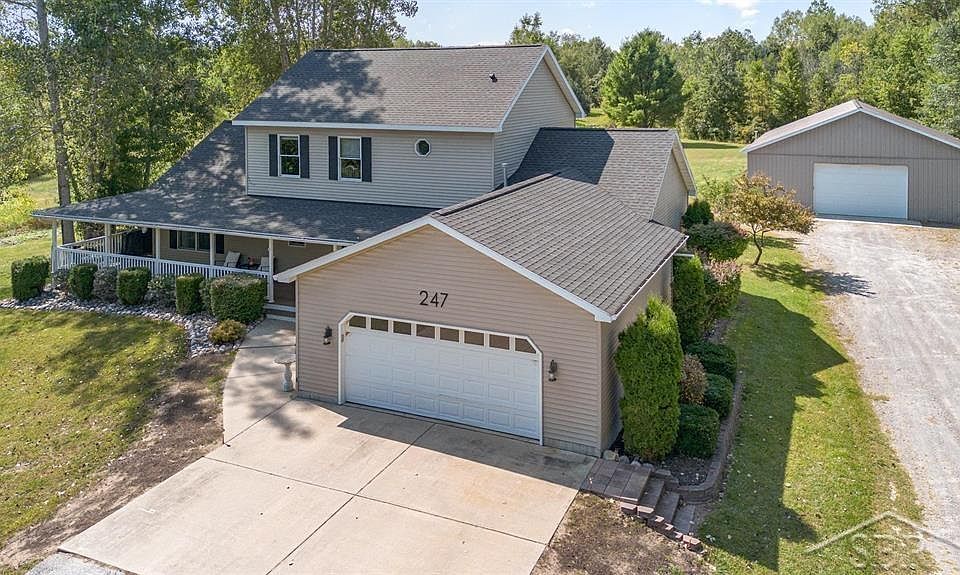 Welcome to this this inviting 2-story home offering 3 bedrooms, 2.5 bathrooms, and 2,688 square feet of comfortable living space, all perfectly set on 18.06 acres of beautifully maintained land just six minutes from downtown Midland. If you’ve been searching for a property that combines privacy, recreation, and convenience, this one has it all. The land is a true highlight. Nicely manicured trails wind throughout the property, leading you through wooded areas, open food plots, and peaceful spots where wildlife is plentiful. An 8x12 elevated box blind is already in place for hunting, and in the spring you can look forward to hunting for morel mushrooms, which have flourished here for years. Apple trees scattered throughout the acreage add to the charm and provide a natural draw for deer and other wildlife. A separate easement runs parallel to the driveway allowing access to the landlocked parcels behind the property. There's an additional easement that allows access to a neighbor's pole barn on the south side of the driveway. The home itself is designed with both function and comfort in mind. The main level features a spacious master suite with dual walk-in closets and a private bathroom, offering the perfect retreat at the end of the day. Upstairs, additional bedrooms provide plenty of space for family or guests. The home rests on a 4-foot crawl space with a concrete floor, giving you solid storage and easy access. Thoughtful updates have already been made, including a newer roof, tankless water heater, Trex decking, and railing, all completed about four years ago. Utilities include city water, natural gas, and a septic system that was pumped three years ago. A true bonus is the impressive 40x56 pole barn. Fully insulated, finished with OSB, heated, and equipped with electricity, it features a concrete floor and two 10-foot doors—one at each end—making it incredibly versatile. Whether you’re storing equipment, working on projects, or creating a space for hobbies, it’s ready to meet your needs. This property offers so much more than just a home—it’s a lifestyle. Whether you’re enjoying the quiet trails, picking apples, watching wildlife, or relaxing on the deck, this is a place where memories are made. With its mix of comfort, utility, and outdoor adventure, this property is ready to welcome you home.