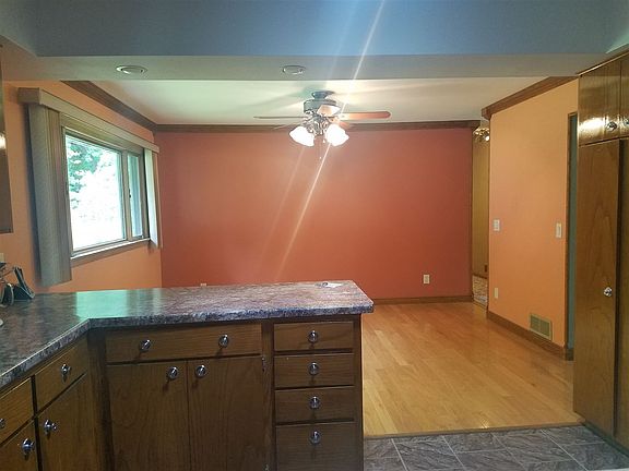 Quality built home in the heart of Rosholt. Many updates have been made and all you have to do is move in. Walk into the foyer, hallway has 2 full closet and the living room has custom drapes, fieldstone wood fireplace and a great space to relax or converse.The open concept kitchen area to dining room is attractive, kitchen has solid cabinetry, beautiful backsplash, newer countertops, shelves are pull out sliders,newer flooring and stainless steel appliances. Dining area has hardwood floors and plenty of natural light from the large window. Master bedroom has 2 full closets, a private bath and newer vanity. One bedroom is used as a sewing room, another as an office. All bedrooms have ceiling fans and all closets have lights per seller.The lower level features a family room with a wet bar area that has a sink and compact refrigerator. This room is heated with natural gas and has a separate furnace. There is a half bath and another storage room. Pool table and some personal belongings are negotiable. This home has space and storage areas. Walk out to the large patio that has a canopy tongue & groove ceiling with cane ceiling fans, view the perennials, enjoy the blackberry, blueberry and rasberry bushes, play in the back yard or walk down to the pond and fairgrounds. The man cave or she shed (inside 24x25) is all set up with another furnace, fully insulated. The detached garage is a 22x25. Another utility shed is in back of it and a 8x16 garden shed. There is electricity to front island, to potting shed & water.