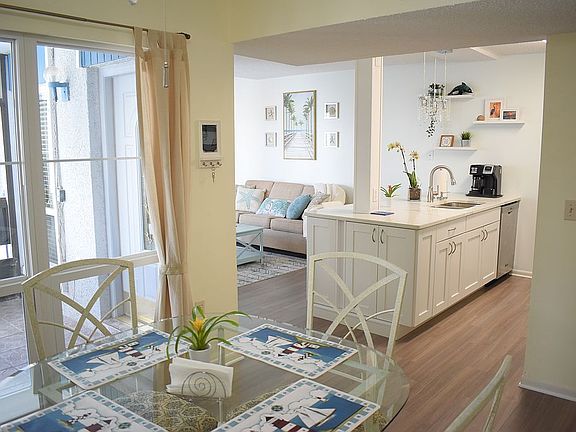 Remodeled 2 level, 2 bedroom/1.5 bath second-floor condo just steps away from the white sandy beach. This condo was unaffected by storms/hurricanes. Located in the gated waterfront community of Madeira Beach Yacht Club (short term rentals allowed) with access to free parking, 2 outdoor heated swimming pools, jacuzzi, sauna, exercise room, billiard room and fishing piers. Walking distance to great restaurants, bars, shopping, groceries and across the street from ROC Park (splash pad, tennis, basketball, softball courts). New a/c in 2022, new full size washer and dryer in 2023. Condo fees include cable internet and TV, water, sewer, garbage, flood insurance and pest control. Milestone Inspection - passed 12/2023.