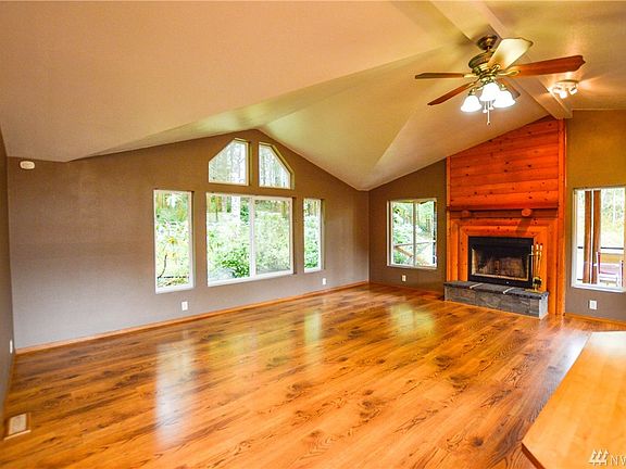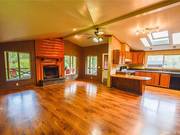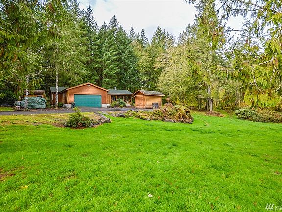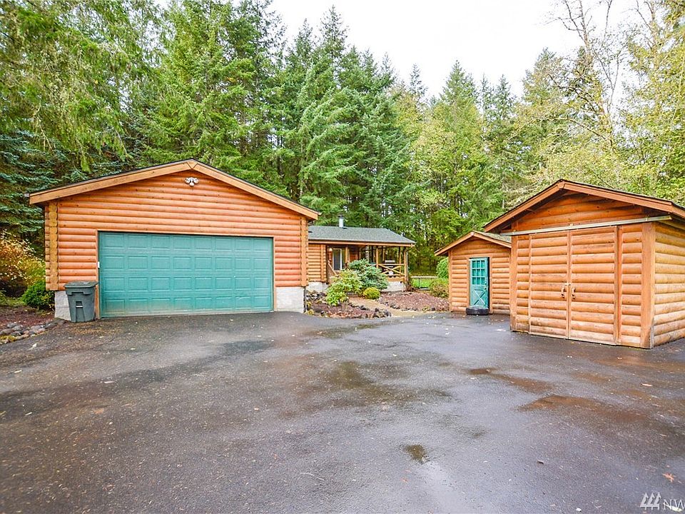 Looking for a tranquil setting? This is it! Lovely cabin style home features two bedrooms, two bathrooms, an open layout with vaulted ceilings and walk in closets. A wood burning fireplace centers the living room that looks out to the beautiful wooded surroundings. Covered deck, patio, several outbuildings and attached 2-car garage. Mostly flat to lightly sloped 5 acre property. Paved driveway with room for extra/RV/boat parking. Just a few minutes to I-5 on this quiet, private, tree-lined Lane!