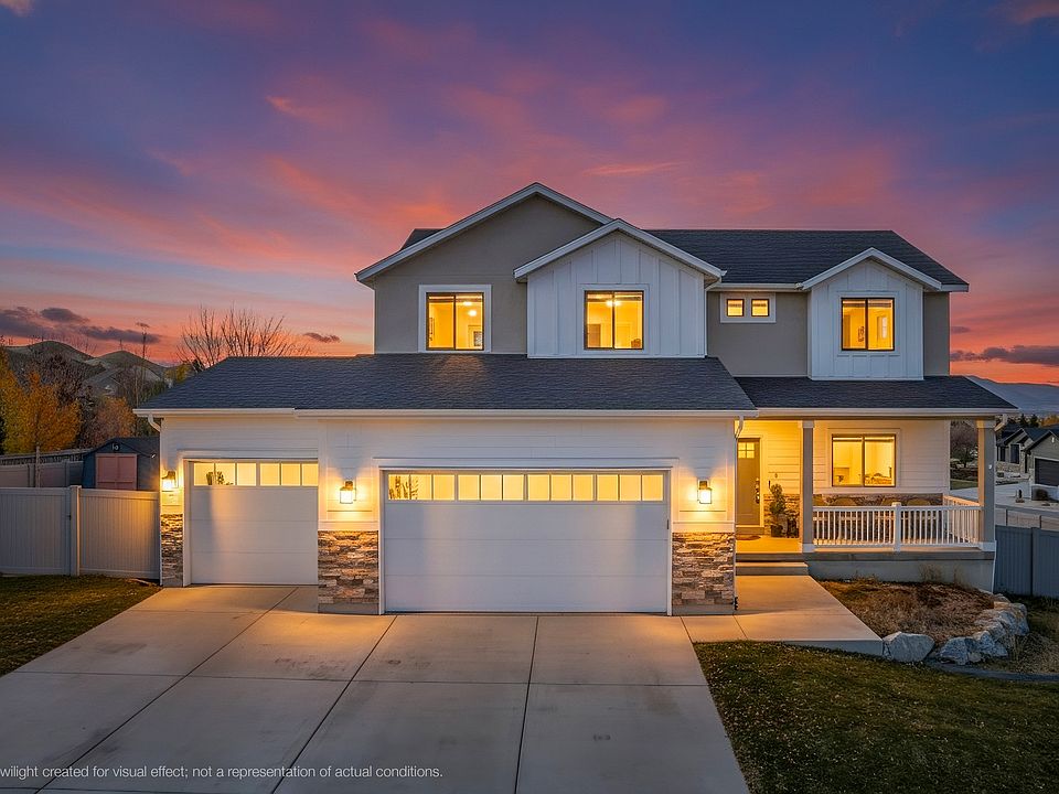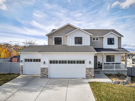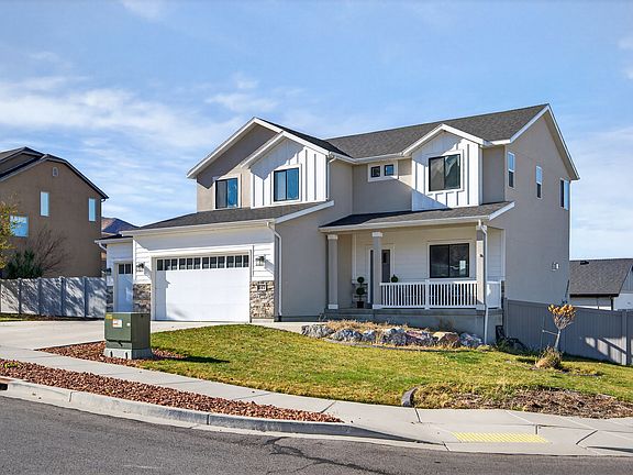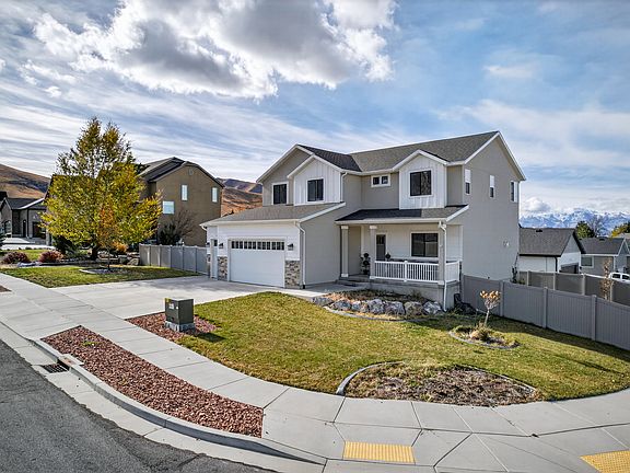 Fabulous Skyline Tooele Benches home in the Vista Linda Sub Division. This 2019 Two-story offers an elegant modern design, two-tone paint, high-end furnishings, and custom touches throughout. With over 3200 sqft, and 5 bedrooms, this gorgeous home has space for everyone. Featuring an open-concept kitchen that flows seamlessly into the family area, enjoy spending time relaxing in front of the gas fireplace. Located upstairs are four bedrooms, where you will find the master bedroom has a large ensuite bathroom with separate bath/shower, and beautiful quartz counters. The basement has been partially finished with one bedroom, recess lighting and wiring has been completed. All neccessary electrical equipment is on site and included, as well as some drywall sheets. Additional LVP Flooring has been purchased and will be included to finish out the flooring in basement. Enjoy views of the mountain from almost anywhere in this East facing home. Schedule your showing today! Square footage figures are provided as a courtesy estimate only and were obtained from County Records. Buyer is advised to obtain an independent measurement. Buyer to verify all.
