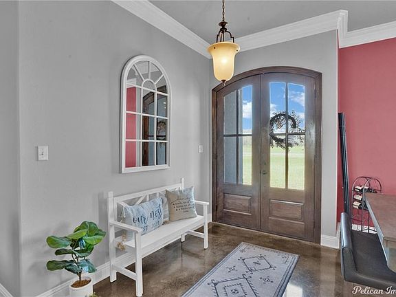 This home is Perfectly sited on a 1 acre lot in the Sought after Gated community of Beau Riviera. The home has been immaculately maintained & offers over 2,000 Sq feet of living space, 3 bedrooms 2 full baths & an open floor plan concept. The home is wrapped with crown moldings throughout, stained concrete floors, high ceilings & large windows that pours in the natural light. The generous sized primary bedroom offers vaulted ceilings, recessed lights & leads into the primary bathroom. The primary bathroom has dual split vanities, large soaking tub, large walk in fully tiled shower with bench & glass frameless door. The primary bathroom also hosts the large walk in closet. The kitchen has everything you need to prepare your favorite dishes for family and friends. It includes stainless appliances, center bar top island & Custom cabinetry covered with granite countertops. The kitchen opens up to the huge living room with fireplace. Theres much more to explore in this home. Don't miss it!