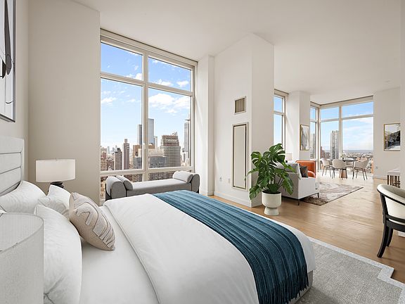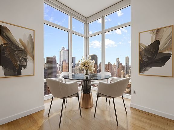 The building features a 24 hour doorman/concierge, garage, high speed elevators, dramatic 26 ft Lobby Fireplace/15 ft Original-Art Plasma Screens/Moving Water w/RiverRocks The ZONE Resort Amenity with Body Massage Chairs, Experiential Multiple Jet Showers, Golf Simulation Room, Yoga Studio, Spa Treatment Room, Sauna Room, Quiet Lounge, Pool Room, State-Of-Art GYM, Terrace and more. Located minutes from Times Square, the striking New York Times building and within distance to Broadway, Rockefeller Center and world-class restaurants, grocers and cafes. For a central location seconds away from numerous commuter and public transit.