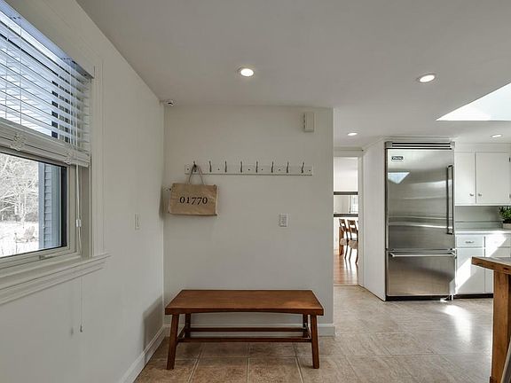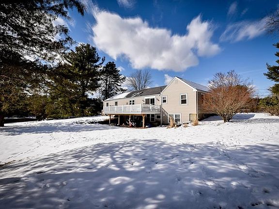 One floor living at it's best: Updated ranch, MOVE-IN CONDITION, on 2 + ACRES with NEW 4 BEDROOM SEPTIC, 2 CAR GARAGE for $529,000! This sun filled home offers so much: kitchen with white cabinets, skylights, Wolf 6 burner gas stove, Viking stainless refrigerator and pantry, dining area with slider to large, maintenance free deck, living room with wood burning fireplace, 3 good sized bedrooms and 1.5 updated baths round out the 1st floor. The walk-out lower level with all new flooring offers an all-purpose space with laundry, sitting area with fireplace and storage, 4th bedroom, 3/4 bath and utility room. Out-building is historic to property and offers great renovation potential; chicken coop and fenced area is newer; Commuter rail 5 miles away. Top ranked schools, beautiful natural resources, pristine Farm Pond, COME SEE this home and be a part of a great community!