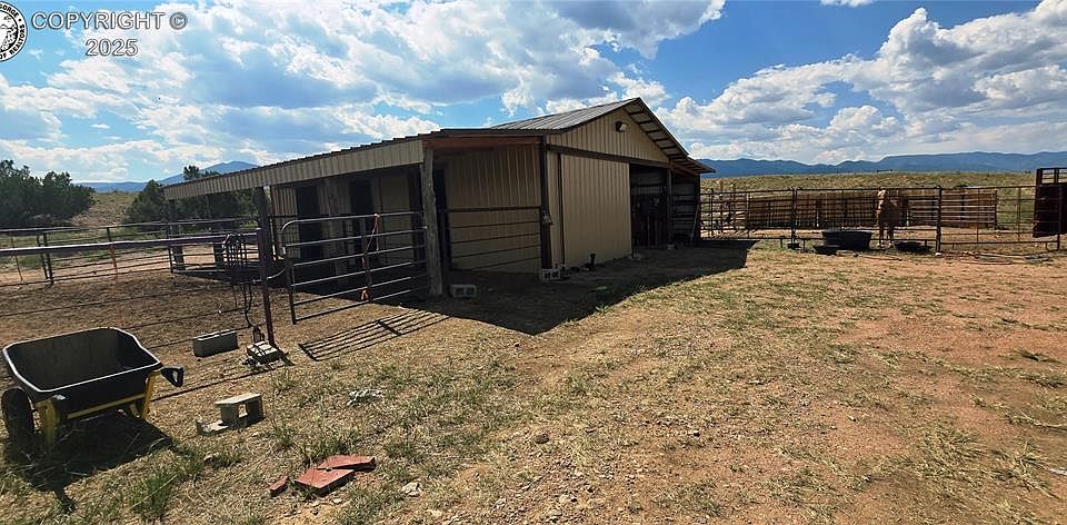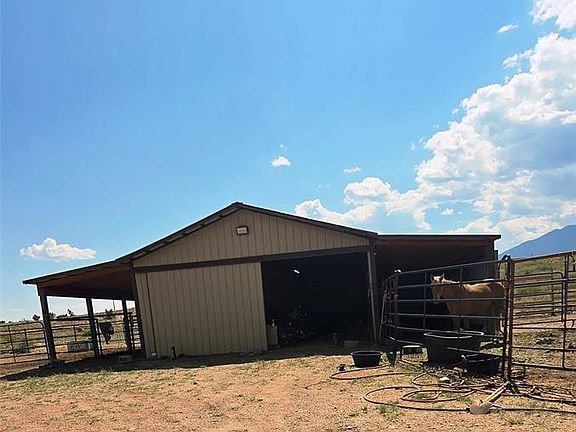 Charming horse property located between Wetmore and Florence, offering a 3-stall barn with rubber mats, fenced run, and stunning mountain views including Pikes Peak. The property features a geothermal greenhouse, electricity (100 amp service), a well connected to two 1200-gallon cisterns, and fenced/cross-fenced pastures. Conveniently situated minutes from Florence, this picturesque land includes a seasonal spring, making it the perfect place for your animals while you construct your dream home.