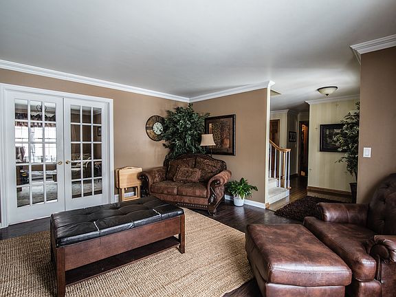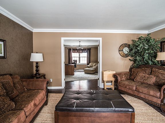 This beautifully maintained & updated, exposed lower level, finished basement, 4 bedroom, 2.5 bath home is move in ready! Wooded lot with no rear neighbors. Over 3.5 car garage, finished off with built in cabinets and epoxy flooring. Entryway through garage leads to mudroom and separate laundry room with pocket door to seprate from foyer. The home offers many amenities such as a large kitchen/dining w/center island, double pantry, wet bar, builtin desk & all appliances & a beautifully attached 4 seasons sun room with patio door to expansive patio. Generous great room boasts floor to ceiling brick and glass fireplace flanked by builtins. Two other main level rooms that can serve as formal living/ dining room, and also a office with double glass french doors. The master suite is also generous at 18x16 & including large walk-in closet & large master bath double vanity, glass shower, and whirlpool tub. Three more bedrooms up stairs, walk in closet and a full split bath. Lower level offers 500 square feet finished off with built in cabinets, full casement windows, and forced air conditioning/heat as well as electric baseboard. Basement area also nice built in shelves and work area in back room with tool bench and flourscent lighting. Newer furnace with remaining warranty(2012). New Roof(2008). New oversized water heater(2017).