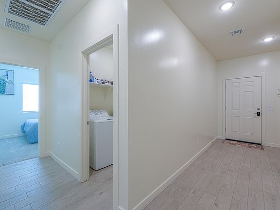 This beautiful fully furnished rental could be your home away from home. As you enter you will be greeted by the open floor plan, with Bar/Island seating along with a dining room table, great for having guests. In the living area you will see a Luxurious sectional and Smart TV. The split floor plan offers extra privacy for the primary suite which includes a King Size bed, walk-in closet and Smart TV. Primary bathroom includes a double sink vanity, closet for extra storage and Walk-In Shower. The two secondary bedrooms include Smart TVs, Queen Size Mattress' and ceiling fans, across the hall from both bedrooms is the secondary full bathroom which includes a bathtub. Enter the back yard through the sliding doors in the living room to see a spacious yard which includes a porch, artificial turf and pavers that connect to the front yard.