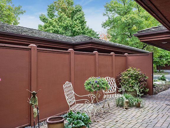 Brentwood-Rarely available end until w/o rambler t/h on lush wooded, garden graced lot. This classy spacious home is open and bright, illuminated by natural light & skylights. The pvt paver courtyard greets you as you arrive. Step inside to the bright foyer and open flr plan with lovely dining area accented by maple flooring and cozy l/r with gas F/P. Sliding doors lead to lg deck o'looking lush garden. The elegant master ste boasts lg dressing area & beautifully updated BA w/ tile flrs, quartz topped double vanity, whirlpool tub & sep. shower. The bright open kt offers great gathering space, lg center island, quartz counters, maple flrs, skylights, planning desk & recessed lighting. Relax in your l/l fam rm with gas F/P surrounded by built in bookshelves. Sliding doors lead to your screen porch o'looking the serene wooded backyard. Two lg BRs, updated 3/4 bath, walk-in cedar closet and laundry round out the l/l. Extensive storage in utility rm.Great loc. close to Ridgedale/Knollwood