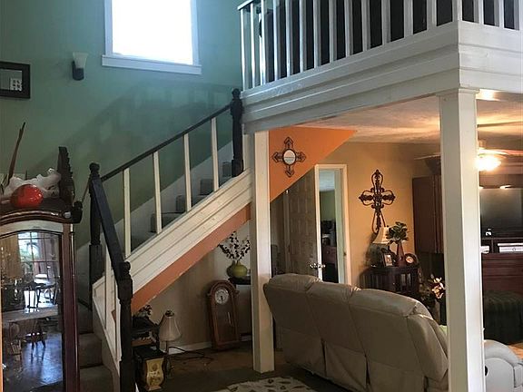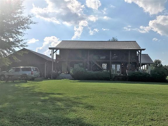 One of a kind! Designed after a trip to Colorado chalet style! This open design has the main living, dining and kitchen open with 2nd story partially open to below. 4 BR/5 BA with lots of space to spread out! Separate den leads to a private BR with large Bath and laundry. Upstairs houses 2 large bedrooms and bath. The bonus is the open 2nd floor living areas!Huge porch spans the length of the house with private full bath for guests who come to fish in the large pond! Outside garage with large storage room attached. There is a large room that can be accessed from inside or out that can be used as an office or mancave! Separate 4 car carport , pole shed and storage building for whatever use you have in mind. Property is priced for +- 6 acres but a total of 20 acres is available. All this in Loyd Star schools!