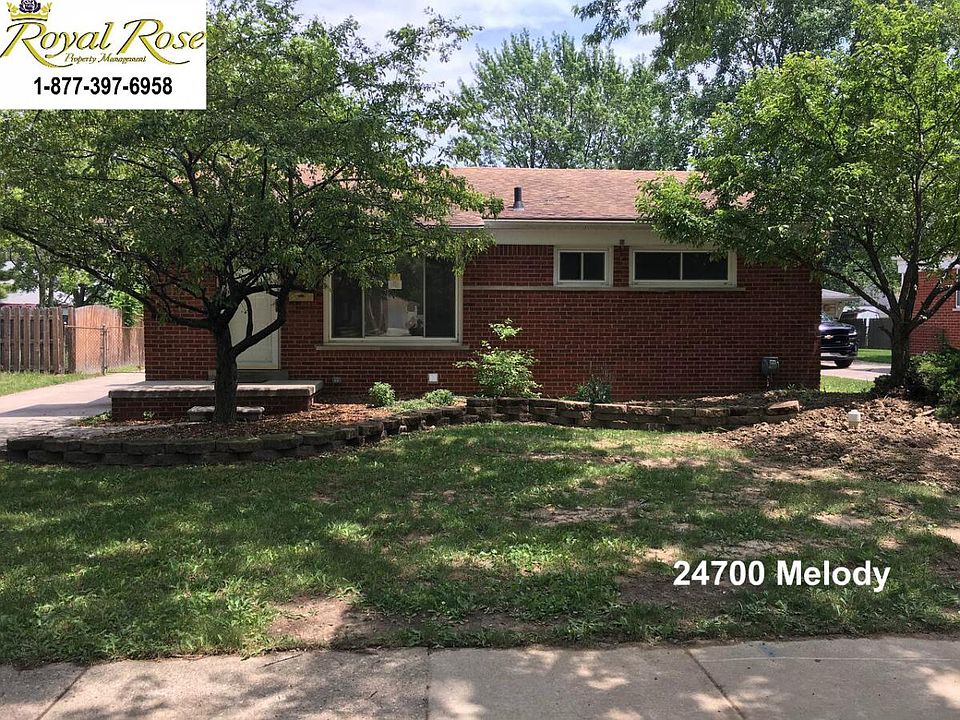Please check our website for more info @ www.RoyalRoseProperties.com. INFORMATION: Call: 1-877-397-6958 Address: 24700 Melody Rd Warren, MI 48089 Availability: Immediately Rent: $995 Security Deposit: 1-1.5 months Style: Ranch Square Ft: 864 # Bedrooms: 3 # Baths: 1.5 Bedroom 1: 12x11 Bedroom 2: 11x10 Bedroom 3: 11x10 Eat-In Kitchen: 13x9 Living Room: 19x13 Basement: Partially Finished Garage: 2.5-car detached, opener w/remote & keypad HVAC: Central Air Schools: East Detroit Amenities: Porch, Patio, W/D, Shed, Alarm, Garbage Disposal, Microwave, Dishwasher, Ceiling Fans Year Built: 1955 Lot Size: 59x149 Location: S off 10 Mile, Just E of Groesbeck Pets: TBD; Extra Fee DETAILED DESCRIPTION This 3/1.5 Ranch has everything you need for a comfortable life, from an alarm system to every major appliance. And it's in a great location as well! Less than 10 minutes' drive from downtown Eastpointe and downtown Roseville (incl. Costco!), and less than 20 minutes from the amazing Lake St. Clair Metropark with its waterslides, nature trails, mini-golf, real golf, skiing, and ice rink! This fully-decked-out kitchen is made for people who love to be in the kitchen. The dual-bowl cast-iron sink with garbage disposal and a swan neck faucet -- and accompanying dishwasher -- make it easy to keep clean. There's plentiful counter and cupboard space near the sink for prep work, and a little more around the stove and fridge for the cooking itself. The back door and stairs to the basement come up here for easy grocery trips and food storage, too. In the bathroom, the tub surround and floor are tile. There's an extra-long counter to hold your decorations and knickknacks, and there's storage in the vanity, on a metal shelf installed above the towel bar, and in the medicine cabinet behind the mirror. The living room is the first room inside the front door, and there's a small coat closet right inside so you can doff your shoes without risking damage to the hardwood floor. A pair of oversized windows let in ample light, so the room feels even bigger than it actually is. Each of the three bedrooms has a unique and dramatic color scheme: one has a two-toned blue-and-indigo theme, one is dark, rich blue with less gloss than the others, giving it a stronger, less playful feel, and the last is a cheery lime green. All three offer hardwood floors and two-panel accordion-door closets. The laundry room is a simple space with vinyl tile flooring, a washer and dryer, and storage space for your household products. Out front, the cute yard has a bit of landscaping and is shaded by a pair of small trees. A driveway snakes around the side of the house and widens out into two lanes before reaching the two-car garage. A small shed sits next door, and the rest of the fully-fenced-in backyard is flat and grassy for easy maintenance. Rent is $995 per month and the security deposit required is 1 to 1 1/2 months depending on qualifications. Viewing is by appointment only and you can move in immediately. To schedule a showing or for more info please call 1-877-397-6958. You can also check our website for other available properties @ www.RoyalRoseProperties.com.