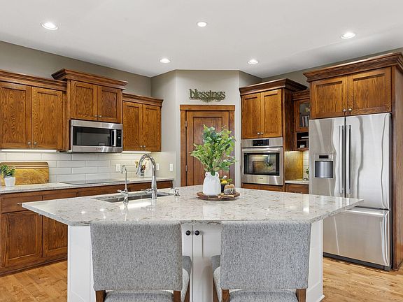 This is the home you have been waiting for!  Meticulously maintained by original owner and custom built on 1.5 acres with private views from every window. You will love the open floor plan, center island kitchen with Cambria countertops, subway tile backsplash, walk in pantry, newer SS appliances,  living room with stunning floor to ceiling fireplace, spacious primary suite with luxury bath, huge walk in closet with convenient access to main level laundry room.  Walkout lower level features in floor heating,  a custom wet bar, recreation and amusement space, workshop, two oversized bedrooms and in floor heating.   Relax outside on your private deck, two paver patios, or front porch.  You decide!   Bonus features include:  Lawn irrigation, invisible pet fence,  heated & insulated garage, reverse osmosis & water filtration system.    Newer roof, newer HVAC and so much more.  Located on a quiet culdesac near walking/biking trails, Crow Hassan Park Reserve, all the shopping/dining entertainment that Maple Grove, Rogers & Hanover provides.
