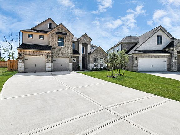 LONG LAKE NEW CONSTRUCTION - Welcome to 24703 Skerne Woods Drive, nestled in the desirable Bradbury Forest community and zoned to Spring ISD. This stunning 2-story home offers 4 bedrooms, 3.5 baths, and a 2-car attached garage. Situated on an oversized lot, this home features a charming front porch with clay brick accents at the foundation. In the family room, there is a cozy fireplace with a herringbone tile surround and wood mantel. The spacious kitchen is equipped with pendant lighting, under-cabinet lighting, and granite countertops. You'll also find a Whirlpool tub and separate walk-in shower in the primary suite, a dedicated media room with surround sound prewire, and a study with French doors. The game room boasts decorative wood ceiling beams. Additional upgrades include full gutters, sprinkler system, ceiling fans and much more. Don't miss the opportunity to make this beautifully upgraded home yours—schedule your private showing today!