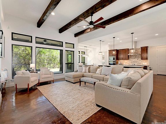First things first - this is a 4 bedroom home PLUS an office/flex space! Yay! Don't miss this opportunity in one of Central Texas' most prestigious and peaceful communities. Gated community with it's own airplane landing strip and over 30 waterfront acres along with a pool that has the most breathtaking views we've seen of Canyon Lake along with lake access. vidoes and photos of the acreage/pool/lake access/runway available. Canyon Lake marina is a mere 3ish miles away.Welcome to 2471 George Pass-where modern design meets Hill Country serenity. Nestled on nearly 1.3 acres in one of Canyon Lake's most exclusive gated communities, this stunning single-story home offers the perfect balance of peaceful privacy and contemporary style. With 4 spacious bedrooms, a dedicated study, and no carpet in sight-only sleek concrete floors throughout-this home is as practical as it is beautiful. Step inside and feel the calm: clean lines, open living spaces, and thoughtfully chosen finishes that elevate every room. Outside, nature surrounds you. The lot offers space to breathe, unwind, and enjoy the stillness that only a place like this can provide. But it doesn't stop at your doorstep-this community is something truly special. Residents enjoy access to nearly 30 acres of private Canyon Lake waterfront, a resort-style pool with jaw-dropping panoramic views, and a private airstrip, plus exclusive owner access to the local airport. Whether you're swimming above the treetops, launching your boat, or landing your plane, this neighborhood redefines Hill Country living. Come see why life at 2471 George Pass is more than a home-it's a lifestyle.