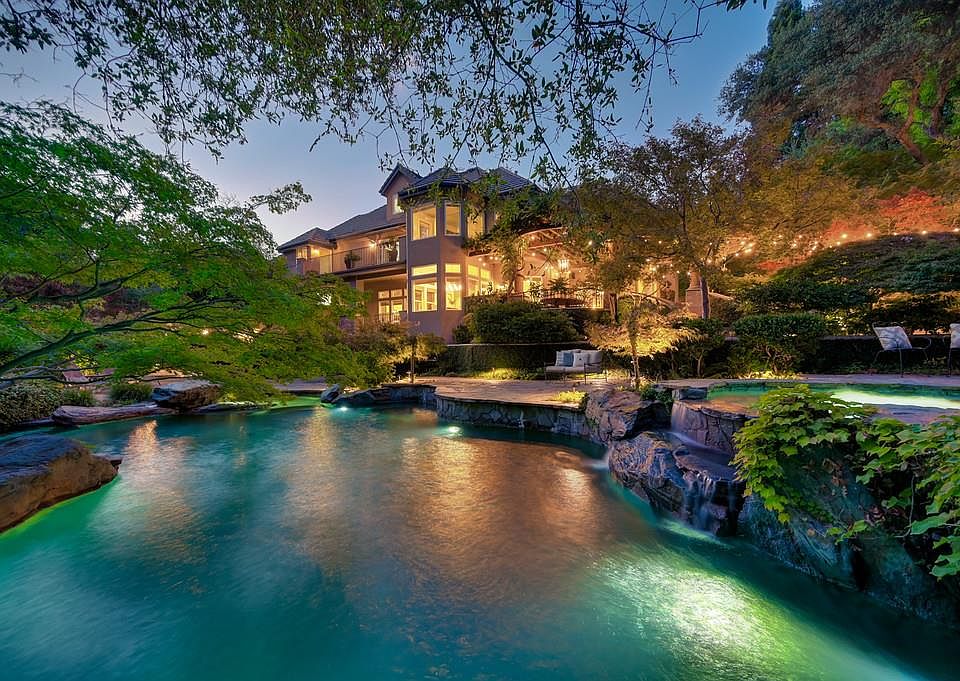 Simply magical. . .this stunning legacy estate, set on two wooded acres in the heart of El Dorado Hills, was designed to host gatherings & create memories to last for generations. Spanning over 8,500 sq ft, this architectural showpiece blends timeless craftsmanship with modern luxury. The main residence, offering 5 bedrooms and 7 baths, is complemented by a separate casita with its own bedroom, full bath, and kitchenette. Limestone and hickory floors, 150-year-old reclaimed beams, and custom millwork showcase enduring quality throughout. Resort-style grounds feature a lagoon-inspired pool with a 145-ft enclosed water slide, two built-in spas, a wisteria-covered patio with outdoor fireplace, tranquil water features, and the natural beauty of a year-round creek. Interior highlights include a library, stunning formal living & dining rooms, gourmet kitchen with Carrara marble counters, theater room, gym, craft room, office, and an expansive game room. The primary suite is a private retreat with dual spa-like baths and walk-in closets, a fireplace, and a secluded balcony. A spacious 4-car garage with Tesla charger, built-in cabinetry, and workbenches completes the home, along with ample parking for an RV and extra vehicles. Two-acre total includes adjacent 1-acre vacant lot.
