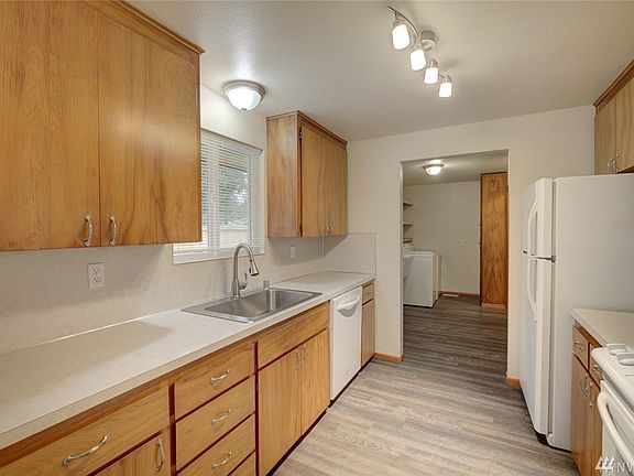 Newly updated three bedroom home in the heart of Maple Valley! Fresh paint, new fence, new windows, new vinyl plank flooring, more. The cozy wood-burning fireplace with brick hearth welcomes you to this 1,180 sqft rambler. The living room and dining room feature beautiful hardwoods. The kitchen includes new flooring and freshly stained cabinets. Fully fenced backyard. Washer, dryer, utility sink in the laundry room. Two car carport and driveway for parking. Lawn care is included.