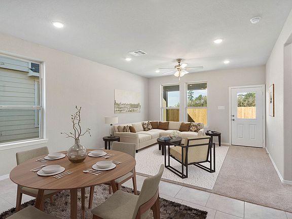 This home features a front porch entry, island kitchen that is open to the dining and family rooms, covered patio, secluded primary bedroom with large walk-in closet and a flex space.Great standard features, including granite countertops in kitchen and all baths, 42 inch cabinets, stainless steel appliances, tankless water heater, full sod front and back, home automation powered by Google, large walk-in showers, coach lights, and more!