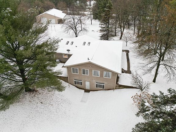 Welcome to this sprawling 1 story on a private fenced in lot on nearly 4 beautifully treed acres! Pulling up the driveway gives you a sense of security and privacy as you enjoy the mature trees and flowering bushes adorning this property! As you enter the home through the front door, you will notice a sense of spaciousness that is hard to find at this price point. When you are not enjoying the outdoors, relax in the 4 season sunroom - great for entertaining or enjoying time surrounded by nature! Main Floor laundry & master suite complete w/ large walk in closet, separate tub & shower, oversized mud room off garage and 1/2 bath. Lower level has 1 mostly finished bedroom, 3/4 bath and amazing space for entertaining in the expansive family and Rec rooms. So much you can do in the basement! New furnace & water heaters. Insulated 40x80 pole shed w/ bathroom , 2 unit heaters & 3 overhead doors (10' 12' & 13' ht.) 20x40 cold storage. Run a business from home or enjoy nature at its finest!