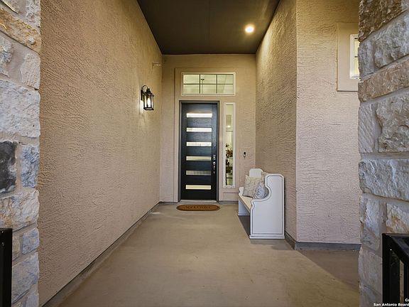 Stunning two-story home featuring 4 bedrooms, 3.5 baths, an office, and a game room, offering an open-concept design with soaring ceilings and custom finishes throughout. The eat-in kitchen showcases an impressive stove/range, ample cabinetry, oversized island, and generous storage, opening to a spacious great room featuring a fireplace perfect for relaxing. The primary suite offers a large walk-in closet, a spa-like bath with freestanding tub, and tall ceilings filled with natural light. The main level includes two additional bedrooms, a full bath, office, and half bath, while the upper level is ideal for guests with a game room, full bath, and fourth bedroom. All bedrooms include walk-in closets. The backyard is an entertainer's dream with a large covered patio perfect for gatherings. Enjoy the incredible Cibolo Canyons lifestyle, featuring multiple pools, a kiddie splash area, playscapes, fitness centers, clubhouses, and scenic trails. Ideally located near TPC San Antonio, the JW Marriott Hill Country Resort, and top-rated NEISD schools including Johnson High School. Convenient access to Loop 1604, Hwy 281, shopping, dining, and the airport makes everyday living a breeze.