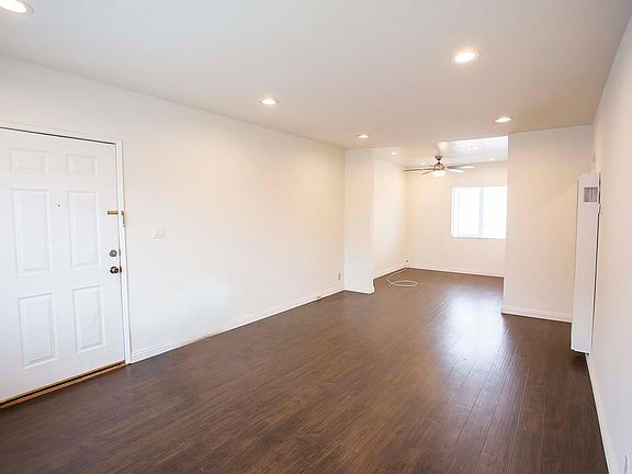 New wood floors, new tiles, remodeled bathroom. Ceiling fan in dining room and 1 bedrooms, Recess lighting throughout. New paint. New double pane windows. Upper Unit. 1 assigned parking spaces. Owner pays for Water and Trash