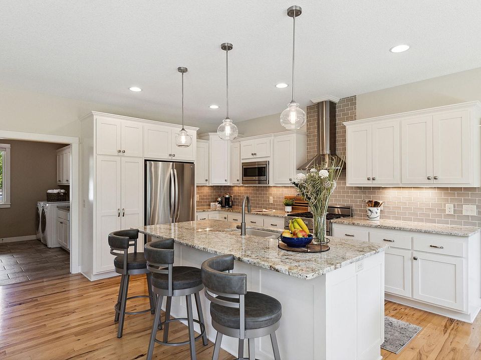 Discover the charm of this stunning 2014 custom-built rambler, designed for ultimate comfort and style. The main level boasts a spacious great room featuring a cozy gas fireplace with built-in cabinets, perfect for relaxing evenings. Adjacent to the great room, you'll find a screen porch, ideal for enjoying serene outdoor moments. The chef’s kitchen is a culinary dream, equipped with a large island and ample counter space, making meal preparation a joy. Convenience is key with main level laundry, streamlining your daily chores. The primary suite offers a peaceful retreat with a luxurious four-piece primary bathroom and walk-in closet. The walkout basement provides additional finished living space. The three-car garage is oversized, offering plenty of room for vehicles and storage. Step outside to your private backyard oasis, where you can unwind with no neighbors behind. This home blends elegant design