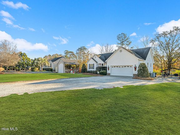 Nestled on almost half an acre, this meticulously maintained 3-bedroom, 2-bathroom home offers the perfect blend of country living and modern convenience. Surrounded by natural beauty and tranquility, yet just a short drive to nearby beaches and vibrant city amenities, this property is the ideal retreat for those seeking both peace and accessibility. As you walk inside, you are greeted by vaulted ceilings and a cozy fireplace, creating a warm and inviting atmosphere. The kitchen is equipped with stainless steel appliances (all just two years old) and features a charming farmhouse sink overlooking the backyard, making it a delightful space for preparing meals. The split floor plan allows for an effortless flow throughout the home, offering privacy and functionality. The primary bedroom features a walk-in closet and an en suite bathroom complete with a luxurious soaking tub and walk in shower, creating a perfect space to relax and unwind. A brand new water softener was recently installed, enhancing comfort and convenience throughout. Step outside to the backyard and enjoy the spacious deck, perfect for entertaining or relaxing with family. The fenced-in backyard provides plenty of space for pets or outdoor activities, and the additional carport adds extra convenience and storage options. Located approximately 20 minutes from Shallotte and Ocean Isle Beach, this home offers convenient access to shopping, dining, entertainment, and pristine beaches.