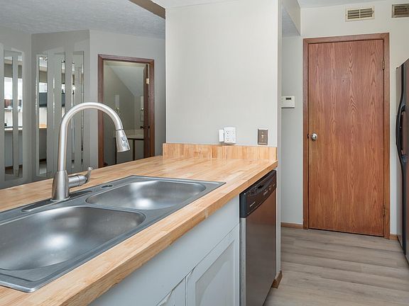 Spacious, affordable end unit condo! Upstairs, both bedrooms are en suites. The owner's suite has 2 closets and the secondary full bath has a new shower and fixtures. The main floor includes a large living room with a fireplace and bay window. Walk in from the one car attached garage to the laundry area and kitchen with updated cabinets and countertops. The dining room leads to the fenced patio area. There is a half bath beyond the dining area. Updates include: new patio door, new flooring throughout most of the unit and fresh paint. Schedule your showing today!