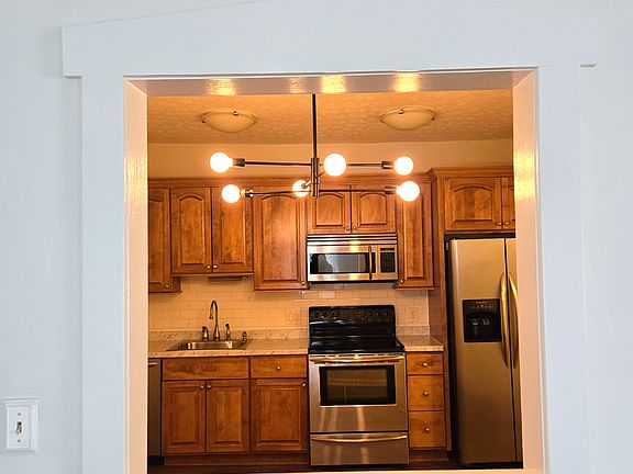 - Large eat-in kitchen with stainless steel appliances, ample cabinets & pass-