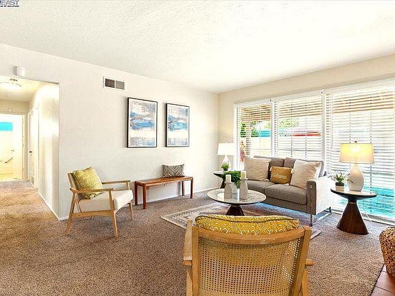 Discover this charming Mt. Eden single-level home in a great court location. Step into the spacious living room filled with natural light from the floor to ceiling windows. Cute vanity area in primary bedroom. Recently completed professional interior painting. Dual-pane windows. Appliances stay at COE. Rose bushes. The backyard is perfect for entertaining. Located nearby 880 freeway, shopping, parks & Chabot college. All of this with a Section One Termite Clearance!