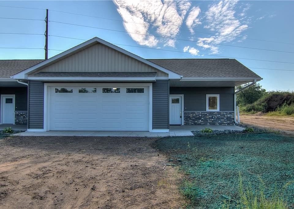 New construction twinhome in a 55+ gated community located between Eau Claire and Chippewa Falls, offering convenient access to Lake Hallie and nearby amenities including grocery stores, restaurants, gas stations, and freeway access. This twinhome features 1,632 square feet of living space with a functional layout and solid construction. Built on slab, each home includes 2?3 bedrooms, 2 full baths, zero-entry access, and an attached 2-car garage. Interior highlights include 9-foot ceilings throughout with a 10.5-foot tray ceiling in the main living area, providing a spacious and open feel. One side of the twinhome offers a private courtyard, while the other features a private side yard. The development will include 5 twin homes and 20+ condos with paved roads, and gated access for added privacy and security. Construction is underway with completion scheduled for 2025.